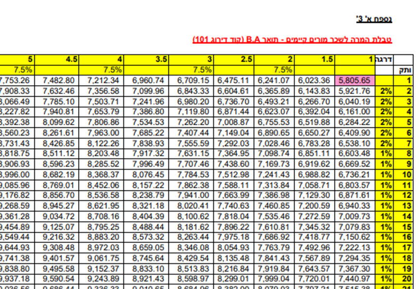 האחד, שכר הבסיס להמרה שמושפע מוותק, גמולי השתלמות ותפקידים.